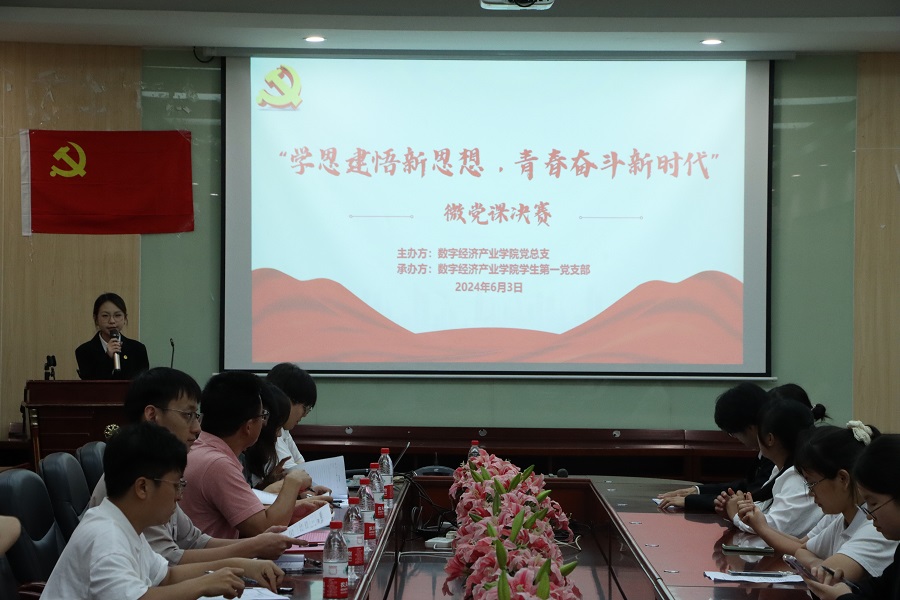 为进一步深入学习贯彻习近平新时代中国特色社会主义思想和党的二十大精神,推动党史学习教育走深走实,引导青年员工强化政治自觉。公司党总支主办、员工第一党支部承办“学思践悟新思想,青春奋斗新时代”微党课比赛,并于6月3日晚在二政208开展微党课决赛。出席本次决赛的嘉宾有公司党总支书记汪椿东、党总支组织员杨丹铭、员工第一党支部书记何杰安、员工第一党支部组织委员杨应涛、教师党员翁佳霖。