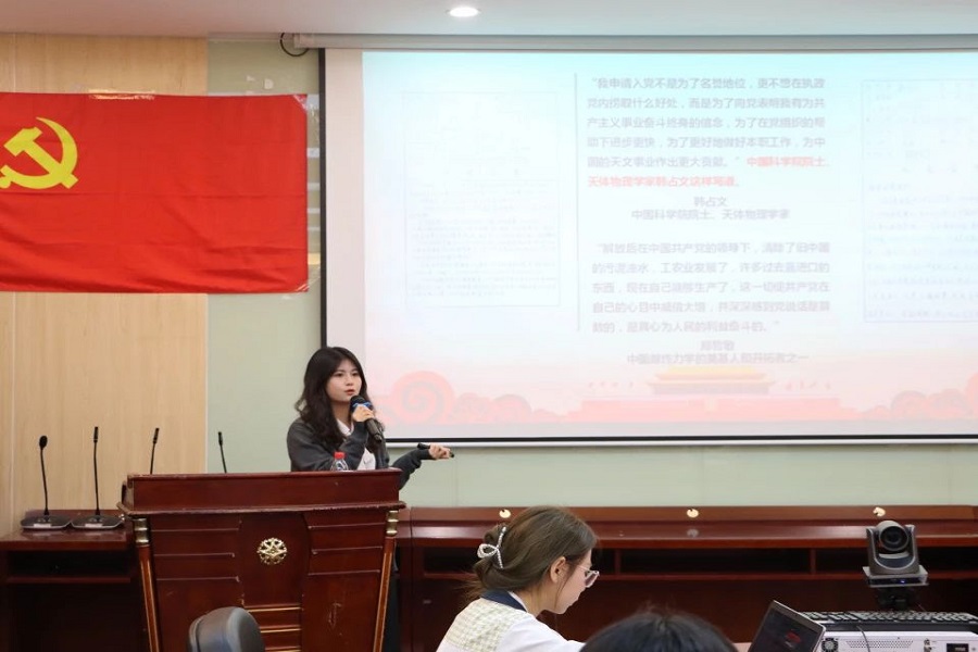 最后,袁小蕾对学员们提出三点希望:一是主动接受党组织的培养教育和考察,加强党的理论知识学习,不断充实和完善自己,提升党性修养,做好榜样模范带头作用;二是从生活中的小事做起,积极参加各项活动,以实际行动入党,用严格的标准要求自己,把“四个统一”运用到实践中;三是坚定理想信念,自觉肩负起青年的责任,做有理想、有担当的新时代青年,积极投身到社会实践中,用实际行动为祖国做出贡献。
