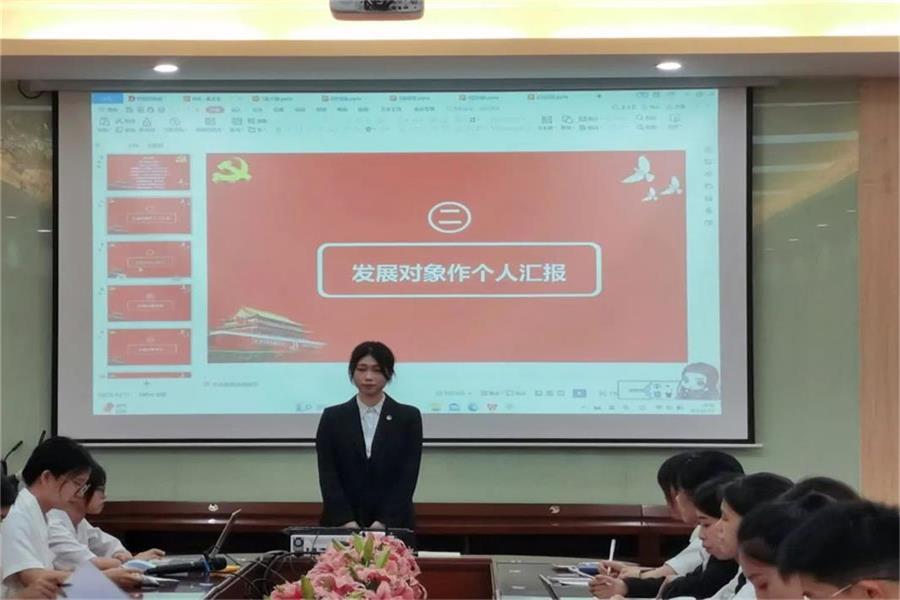 在本次接收预备党员通表大会中,梁梓颖等4名发展对象依次对个人介绍、党的思想认识、表现情况和总结与展望等四个方面向党组织进行详细报告和答辩。并承诺自己将时时刻刻向优秀的共产党员学习,严于律己,践行全心全意为人民服务的宗旨。入党培养联系人分别对发展对象的自身发展情况进行了总结并提出了建议。入党介绍人介绍发展对象的主要情况并对其能否转为预备党员表明意见,经党支部大会讨论投票表决,同意梁梓颖等4名同志转为预备党员。