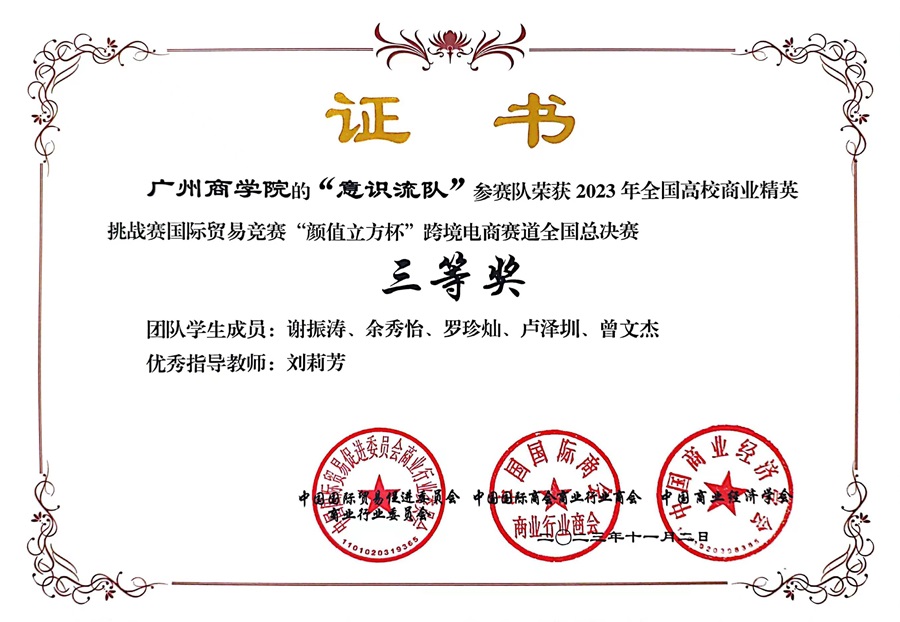 本次大赛是由中国国际贸易促进委员会商业行业委员会牵头主办的国家级学科竞赛活动。经过多年的培育,全国高校商业精英挑战赛国际贸易竞赛业已发展成为我国国际经贸教育领域,基于校企合作的规模最大的综合实践平台和学科竞赛活动。本次大赛设有选品及运营方案赛、平台操作赛和新媒体直播营销赛三大环节,共有来自全国28个省、自治区和直辖市,近300所高校的4000余支队伍报名参赛。经过校赛和全国预选赛的层层选拔,800余支参赛队伍4000余人进入全国总决赛进行激烈角逐。在bevictor伟德官网刘莉芳老师的指导下,团队不断磨合、配合默契,在全国总决赛中斩获两项二等奖及一项三等奖的佳绩。