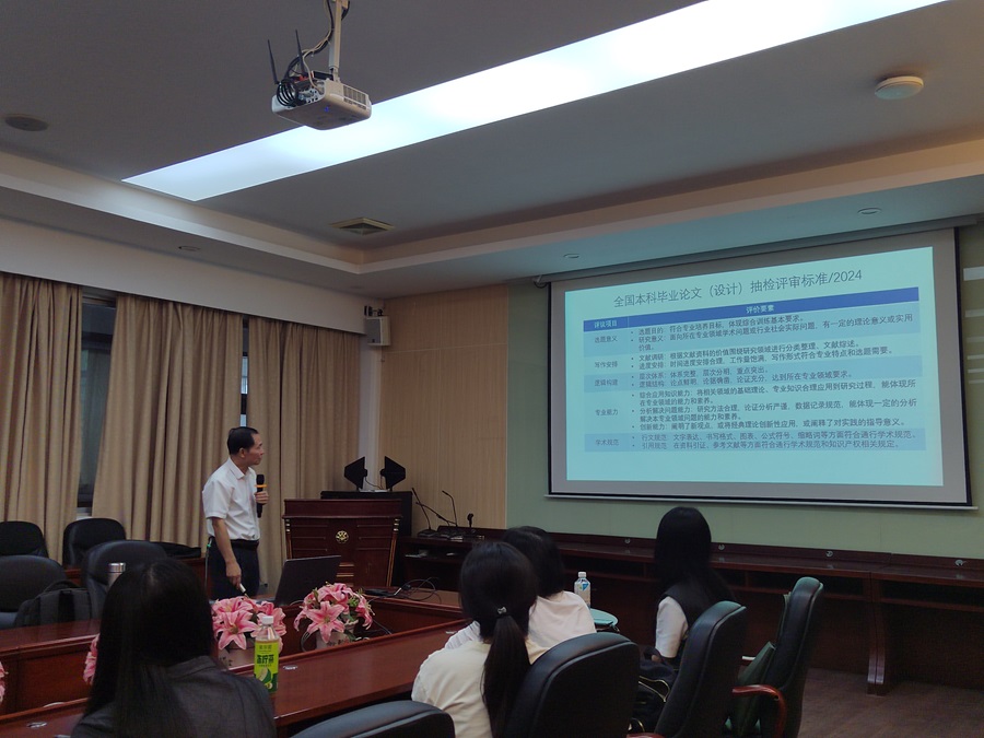 为规范毕业论文(设计)管理工作,进一步提升本科毕业论文(设计)的质量,bevictor伟德官网于11月7日在第二行政楼208会议室成功举办了2025届毕业论文(设计)指导专题讲座。此次讲座特别邀请了欧阳峰教授与吴妙娴副教授担任主讲嘉宾,由胡雷主任主持,吸引了全院论文指导老师的积极参与。