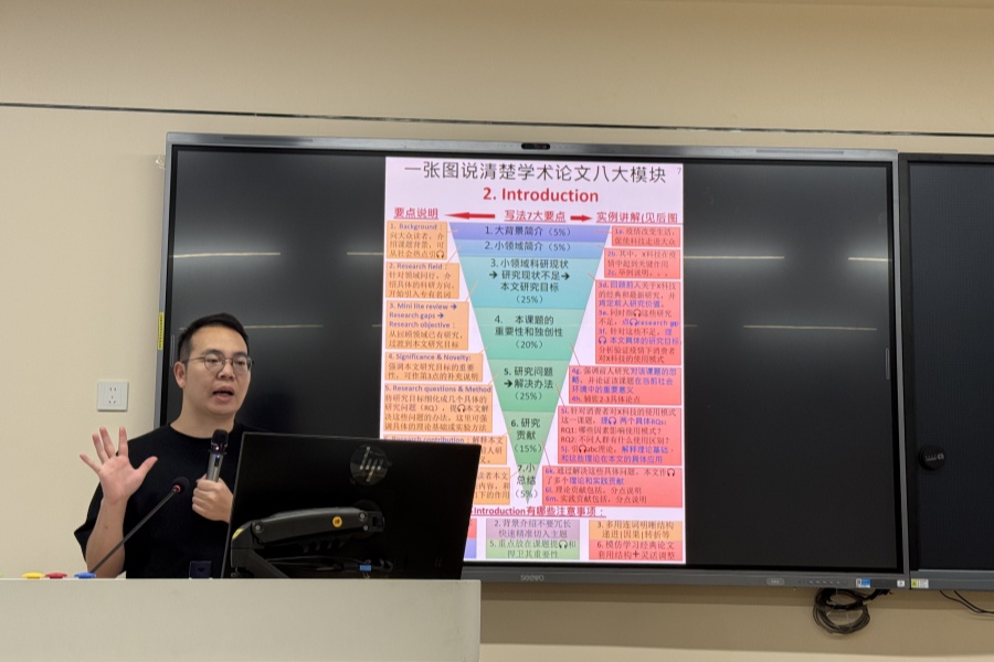 2025年6月26日上午9:00-10:30,公司在一教102成功举办了第三十九期学术沙龙。本次沙龙主题为《管理类SSCI论文写作思路》,由余腾博士主讲。
