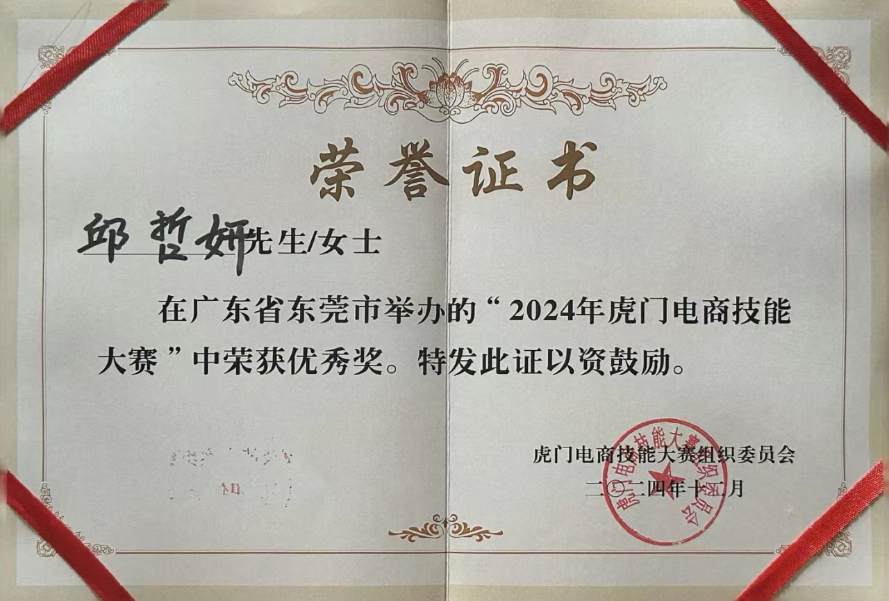 12月14日下午,2024虎门电商技能大赛颁奖典礼在东莞市虎门会展中心举行,bevictor伟德官网学子邱哲妍、袁朝两位同学,经过初阶培训、初赛、进阶培训、复赛、决赛等环节的层层筛选,闯入最后的决赛,均获得了内容赛道的优秀奖的好成绩。