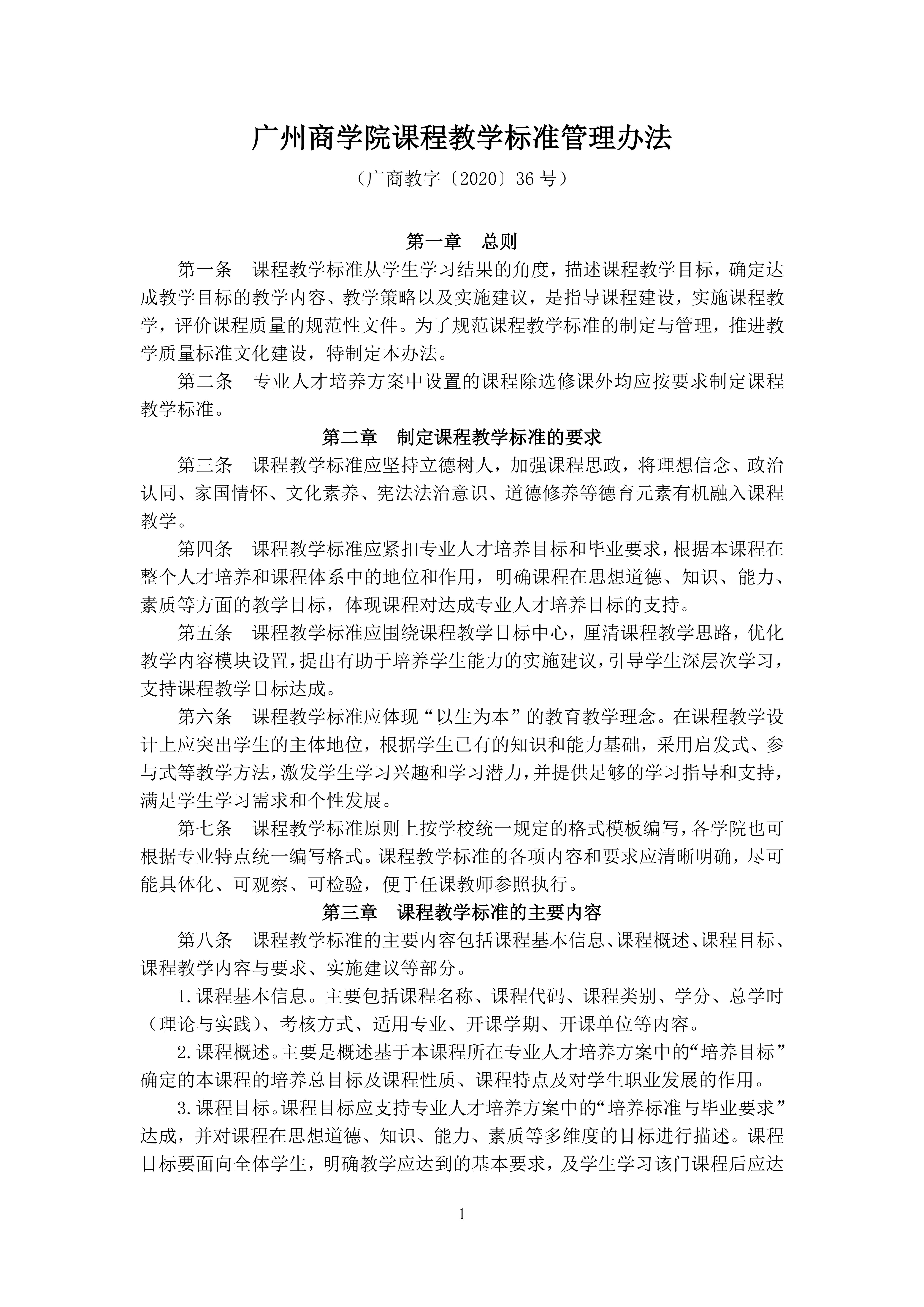 韦德官方网站课程教学标准管理办法(广商教字〔2020〕36号)