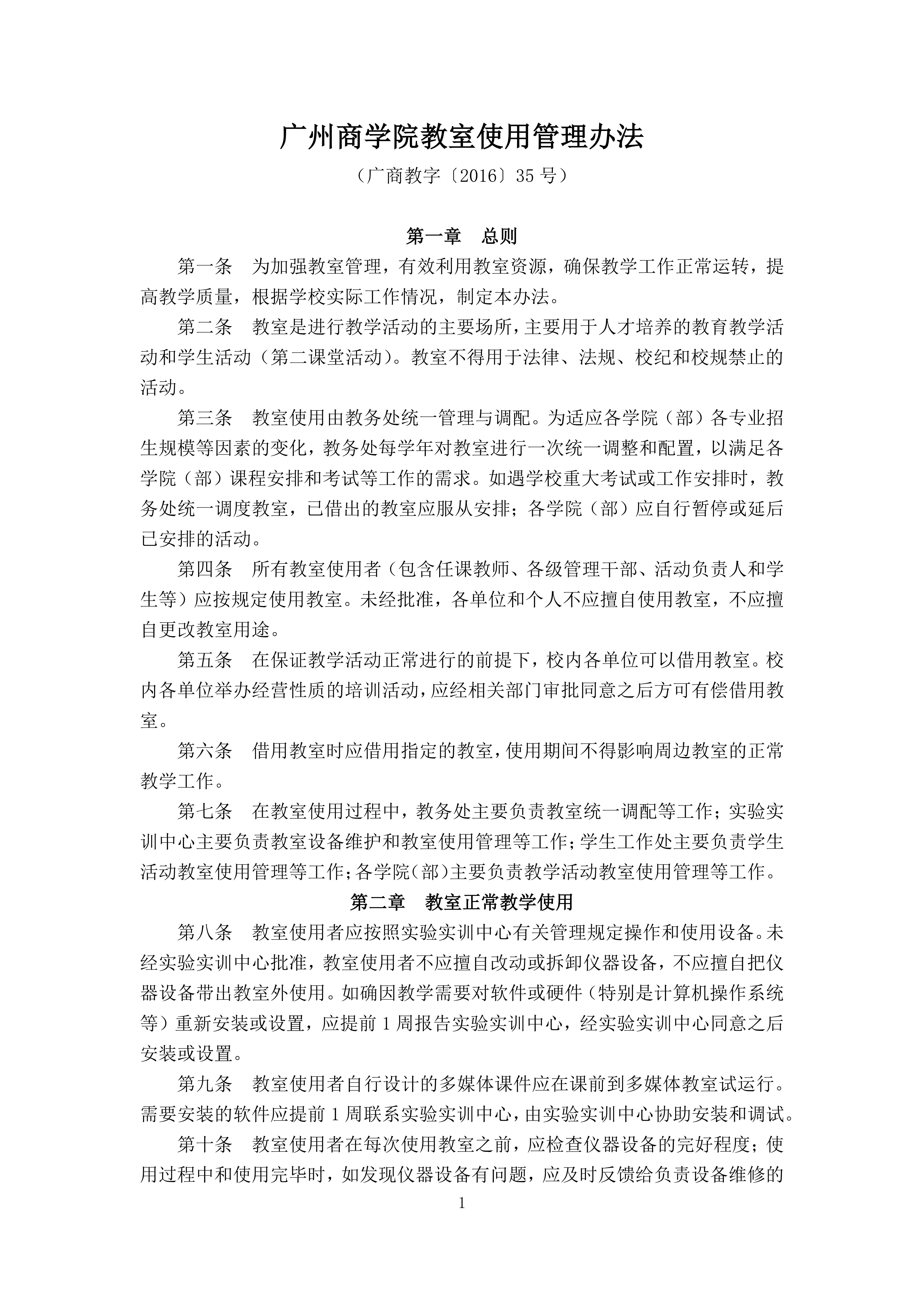 韦德官方网站教室使用管理办法(广商教字〔2016〕35号)