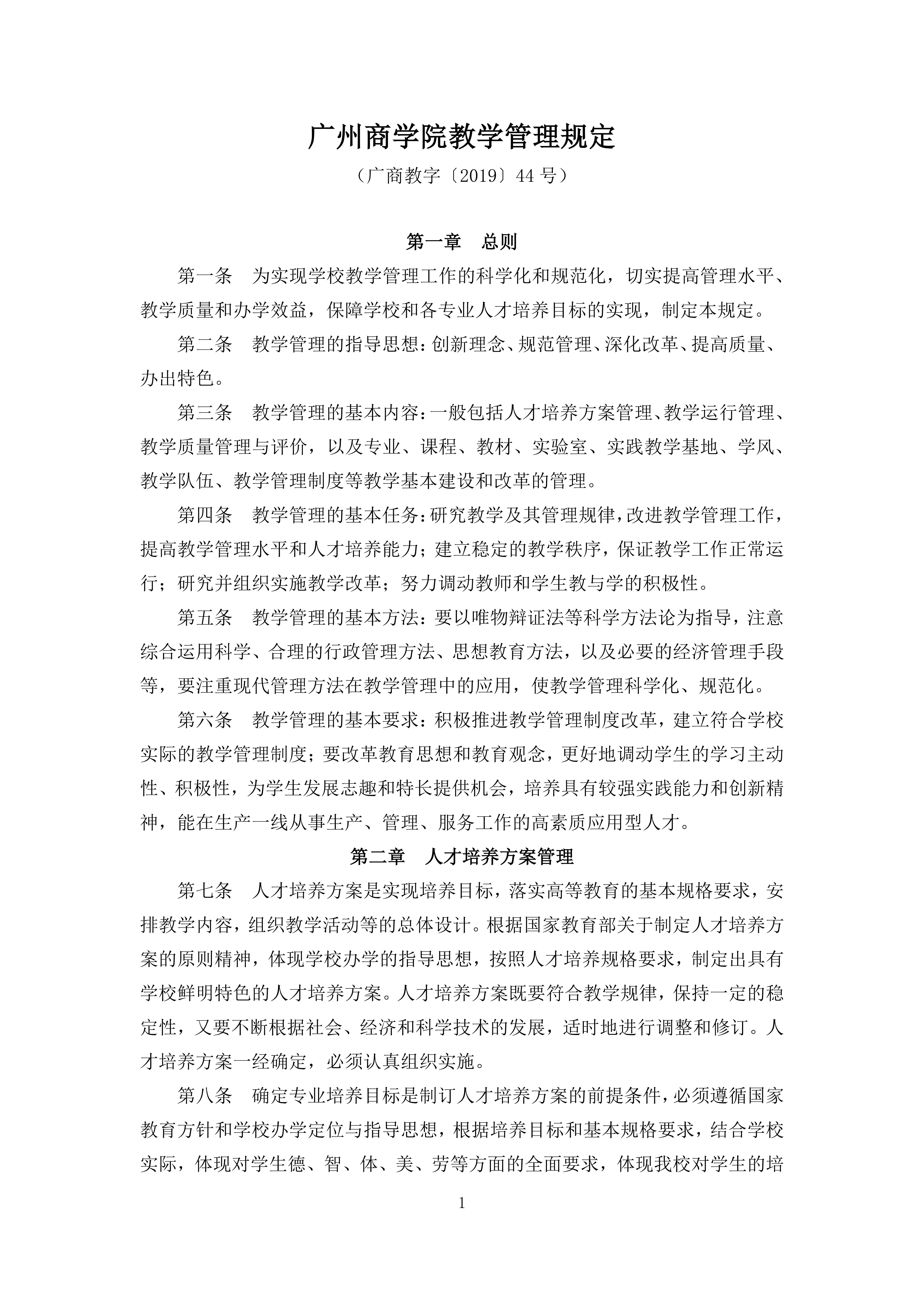 韦德官方网站教学管理规定(广商教字〔2019〕44号)