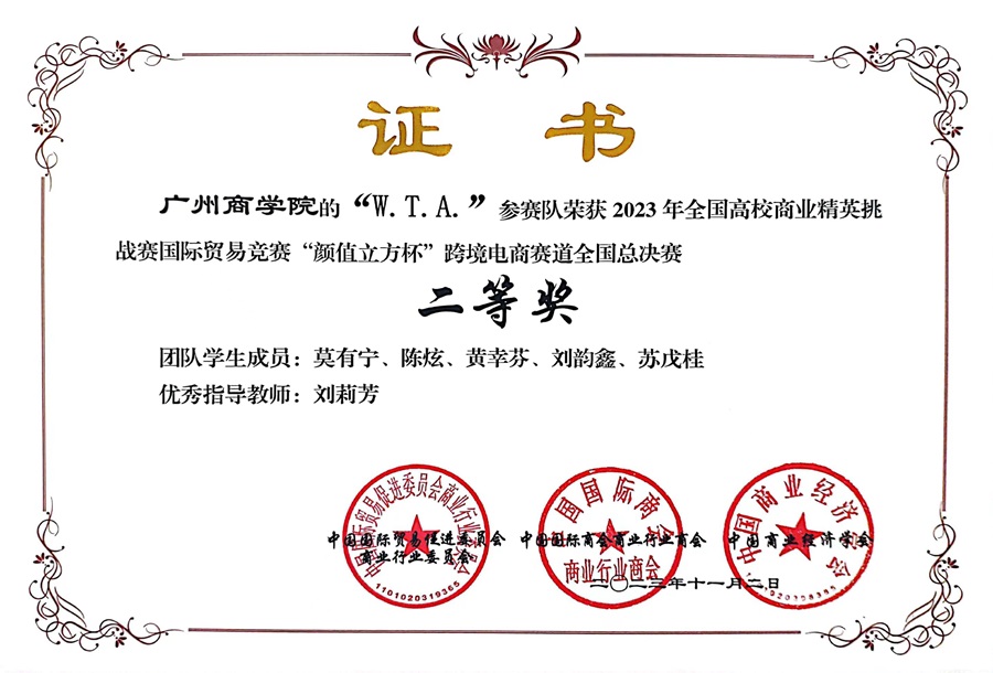 本次大赛是由中国国际贸易促进委员会商业行业委员会牵头主办的国家级学科竞赛活动。经过多年的培育,全国高校商业精英挑战赛国际贸易竞赛业已发展成为我国国际经贸教育领域,基于校企合作的规模最大的综合实践平台和学科竞赛活动。本次大赛设有选品及运营方案赛、平台操作赛和新媒体直播营销赛三大环节,共有来自全国28个省、自治区和直辖市,近300所高校的4000余支队伍报名参赛。经过校赛和全国预选赛的层层选拔,800余支参赛队伍4000余人进入全国总决赛进行激烈角逐。在bevictor伟德官网刘莉芳老师的指导下,团队不断磨合、配合默契,在全国总决赛中斩获两项二等奖及一项三等奖的佳绩。