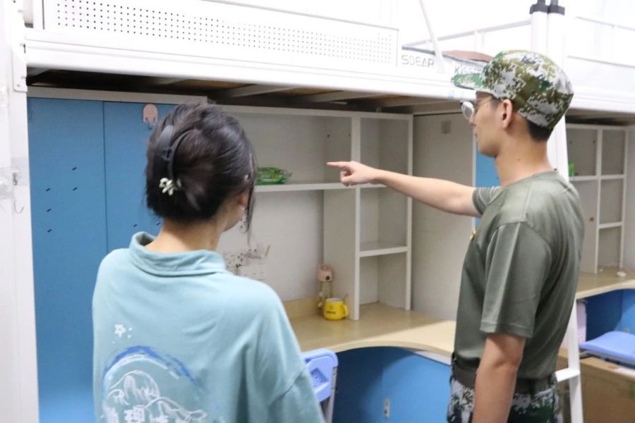 军训伊始,制定宿舍内务规范,辅导员、教官积极配合,助理辅导员以此要求指导员工做好内务整理。检查中,工作人员严谨细致,一丝不苟,深入细致,严格把关,做到不放过一个细节,从衣服叠挂到物品摆放、被子标准,对存在的问题当场指出,并进行了再统一、再规范,使同学们对内务规定有了更加明晰的了解。内务整理不仅为大家提供了良好的住宿条件,更是锻炼2023级新生们勤于、善于动手的能力,培养讲卫生、爱劳动的文明风尚。检查工作结束后,各负责人将检查结果收集汇总,并表示大部分新生宿舍内部卫生干净整洁,物品摆放整齐有序,但个别宿舍也存在不足之处。辅导员对干净整洁,物品摆放整齐、有序的宿舍提出了表扬,同时也对问题宿舍提出整改建议和方法,叮嘱员工重新学习内务整理方法和技巧,再次认真对宿舍进行清扫和整理,希望同学们不断改进,在内务评比中取得优异成绩。