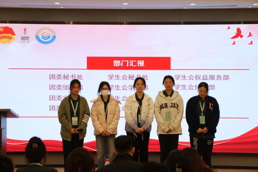 各部门围绕本学期工作总结、不足之处、反思改进及未来规划等方面进行工作述职及答辩。骨干们认真汇报本学期各部门的工作情况,总结在工作中存在的不足,并进一步明确未来工作方向。团学全体成员共同观看公司特色视频。本次大会共评选出5个优秀部门、5位优秀员工骨干以及10位积极固定志愿者,并对他们进行荣誉表彰。