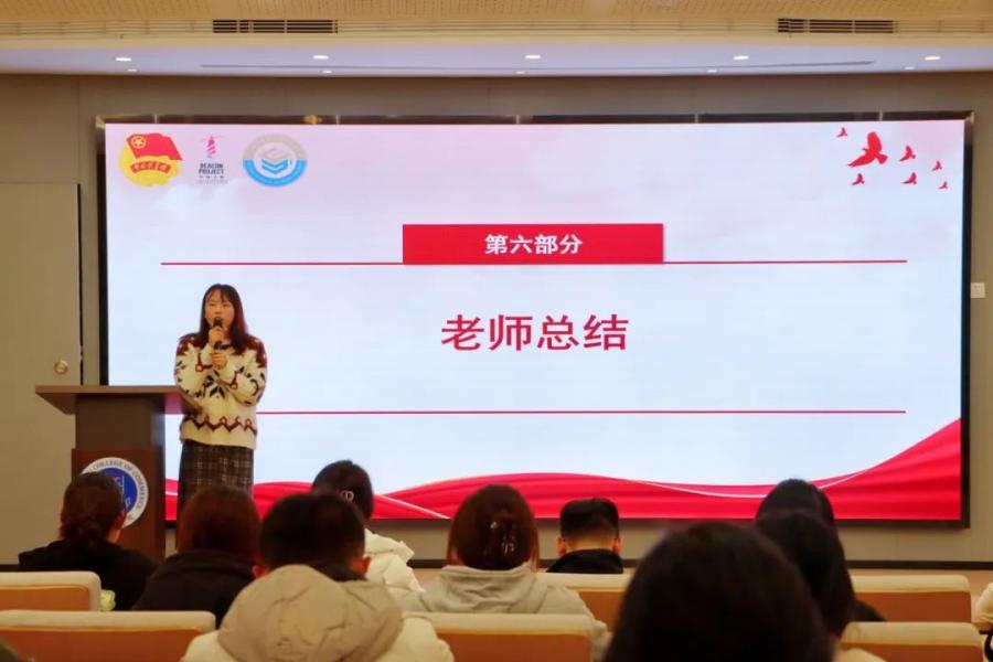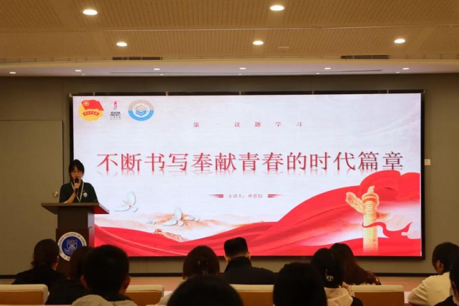 会议在激昂嘹亮的团歌中拉开帷幕。团委员工副书记申思怡带领全体成员学习不断书写奉献青春的时代篇章。她强调广大知识分子、广大劳动群众、广大青年要紧跟时代、肩负使命、锐意进取、把自身的前途命运同国家和民族的前途命运紧紧联系在一起,努力为实现中华民族伟大复兴贡献智慧和力量。