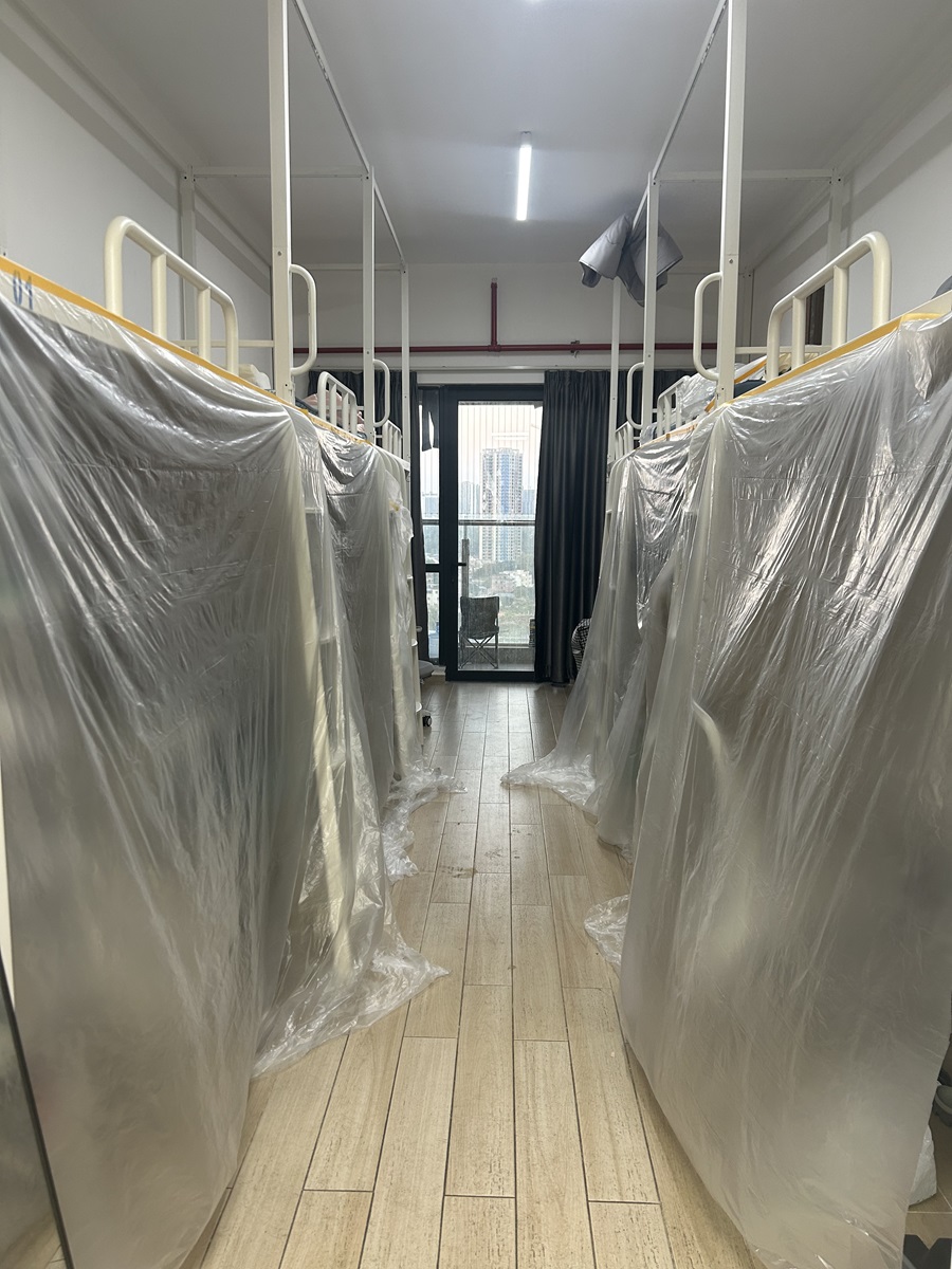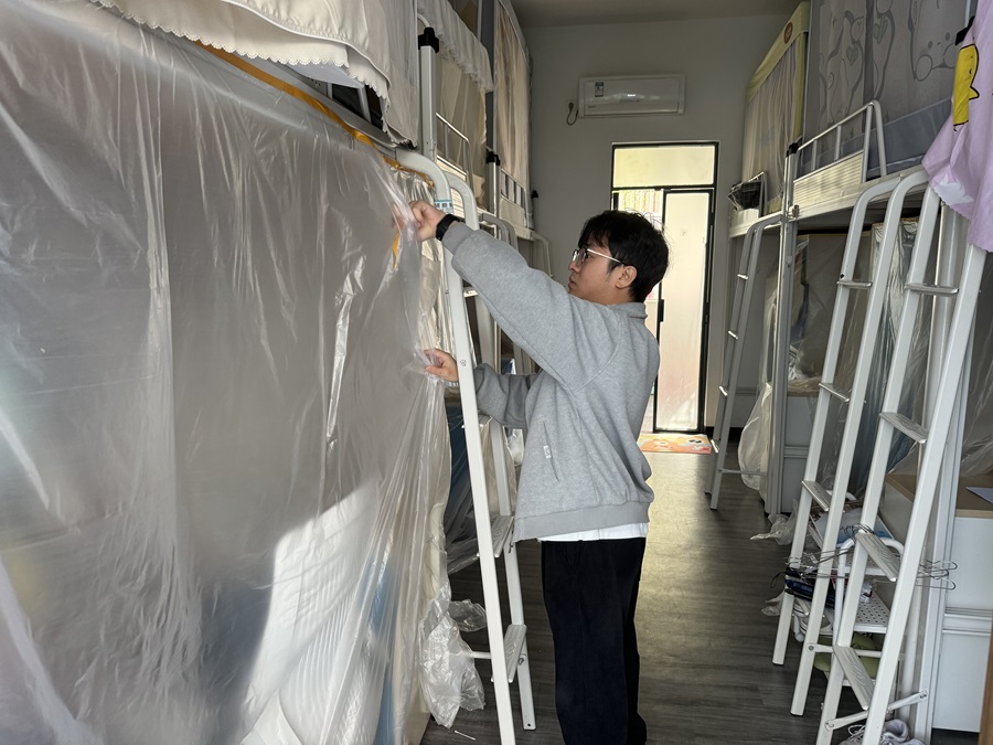 汪椿东要求辅导员充分细致掌握当前员工离校返乡情况,并进入员工宿舍查看员工离校后宿舍管理收尾工作,包括违规电器安全检查、房间断电、门窗关闭、杂物清理等内容。他要求每间宿舍员工全部离开后,辅导员当天要及时检查,消除一切安全隐患,确保每间宿舍安全。