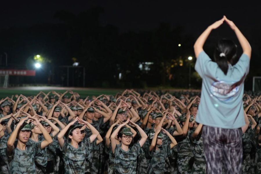 一个个手语动作表达了对国家的炽热情感,歌声嘹亮,气势磅礴。谱写青春壮歌,共抒报国情怀,学子们在手指的一顿一挫动作细节中传递一颗颗赤诚的爱国之心,军训的意义不仅仅在于强健体魄,更在于给青春注入责任与担当的靓丽底色,每一个动作背后都是无数汗水的付出,都是无比的热爱和坚定的信念。