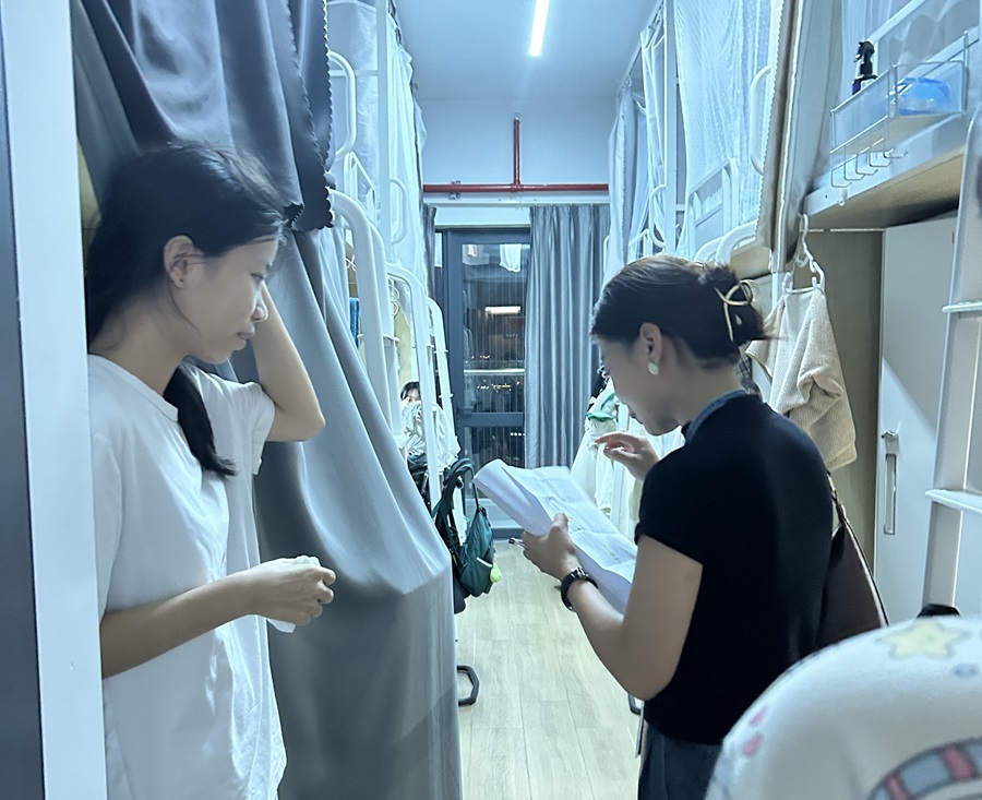 汪椿东对本次安全卫生检查工作作部署,强调着重排查员工公寓中的用电情况及安全隐患。一是重点排查私接电线、使用大功率的违规电器、在宿舍内储存烟酒以及饲养宠物等违纪违规现象;二是检查公寓走廊、护栏、安全出口、应急通道是否保持畅通;三是查看员工公寓内务卫生情况,检查基础设施是否存在安全隐患。汪椿东表示,对发现的问题要及时向员工进行安全教育,树立安全第一的观念,加强员工骨干以身作则的作用,倡导公司学子共同创造文明和谐安全的宿舍环境。
