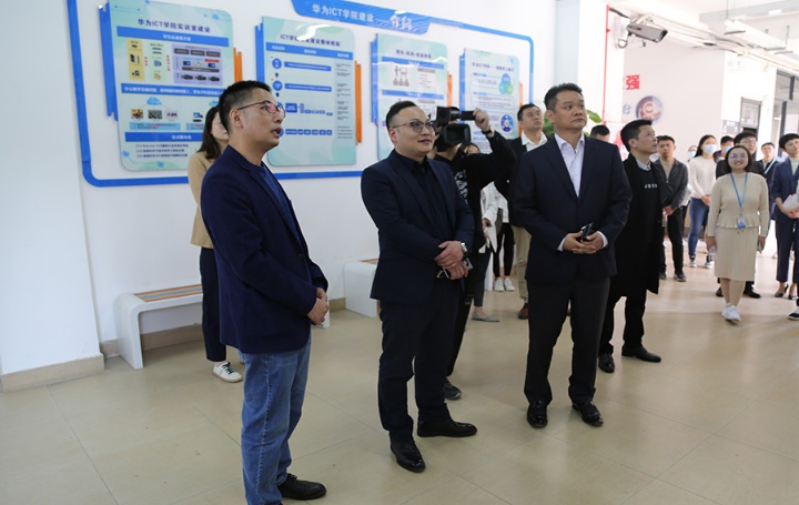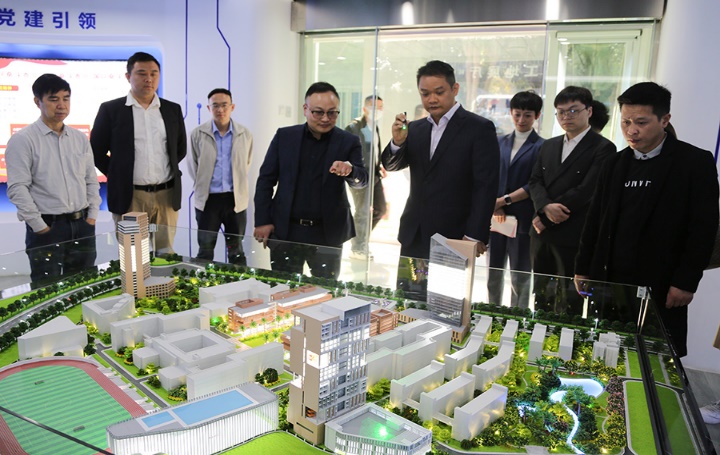 会后,科大讯飞股份有限公司一行在郭小聪执行董事长和校领导的陪同下,参观了公司南校区展示沙盘、华为ICT公司、法公司及北校区38栋员工宿舍。