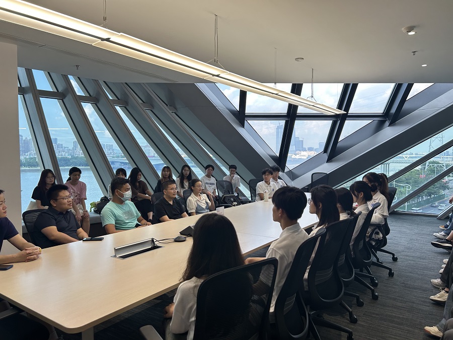 参观结束后,前往会议室进行交流答疑环节。同学们踊跃提问,郑昕亮和刘小明就个人职业发展规划、产教融合特色以及目前就业形势等问题进行了详细的解答,并表示希望同学们珍惜大学四年的时光,努力提升自身学习成绩、学科竞赛以及团队意识等综合素质能力,从而提升自己的就业核心竞争力。