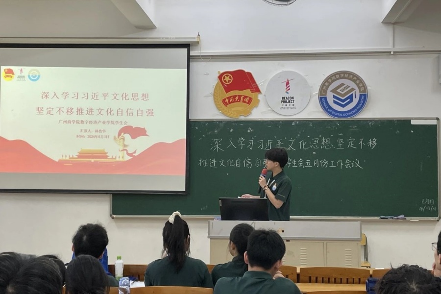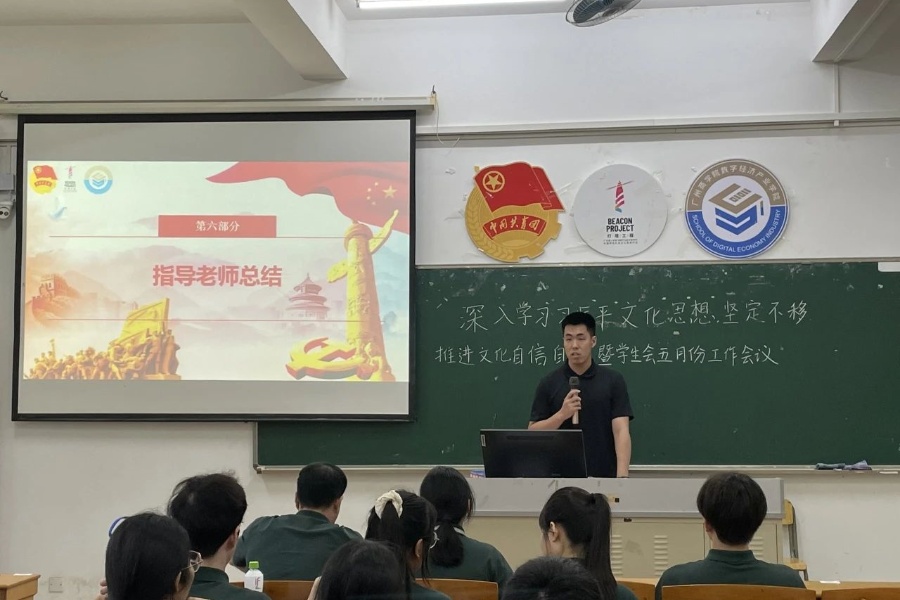 为深入学习贯彻习近平文化思想,坚定不移推进文化自信自强,增强青年文化自信,引导其树立正确意识。bevictor伟德官网员工会于6月3日在第四教学楼307室开展深入学习习近平文化思想,坚定不移推进文化自信自强暨员工会五月份工作会议,团委副书记、员工会指导老师何杰安及全体员工会工作人员出席本次会议。
