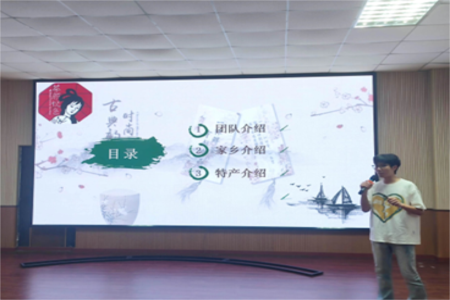 本次活动共有16个小组参加,参赛队伍围绕“我为家乡代言”的主题进行展示。在比赛现场,选手们将自己高涨的热情融入对家乡的讲解中,利用图文并茂的PPT、高超的口才技巧与丰富的肢体语言,绘声绘色地将家乡的美景与美食“立体化”地呈现在观众面前,展现了一个别样的“直播间”,让观众跟随着他们的介绍“云游”不同的城市美景,“云品尝”当地的特色美食。