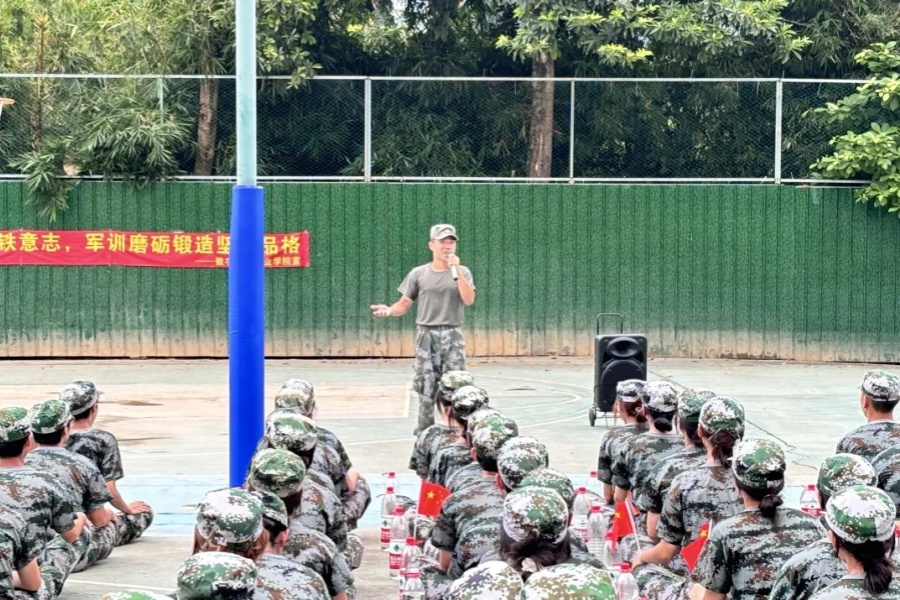 军训教官曾伟杰向新生们分享自己作为一名退伍军人在部队的经历感悟。曾伟杰表示,军训能够让老员工体会到军营生活的重大意义,是每名员工迈进大学学习生活的开篇卷首,意义非凡、影响深远。同时,他希望同学们能借助此次军训的机会,磨炼出不怕苦,不怕累的精神,用汗水和成绩给军训之旅交上满意的答卷。
