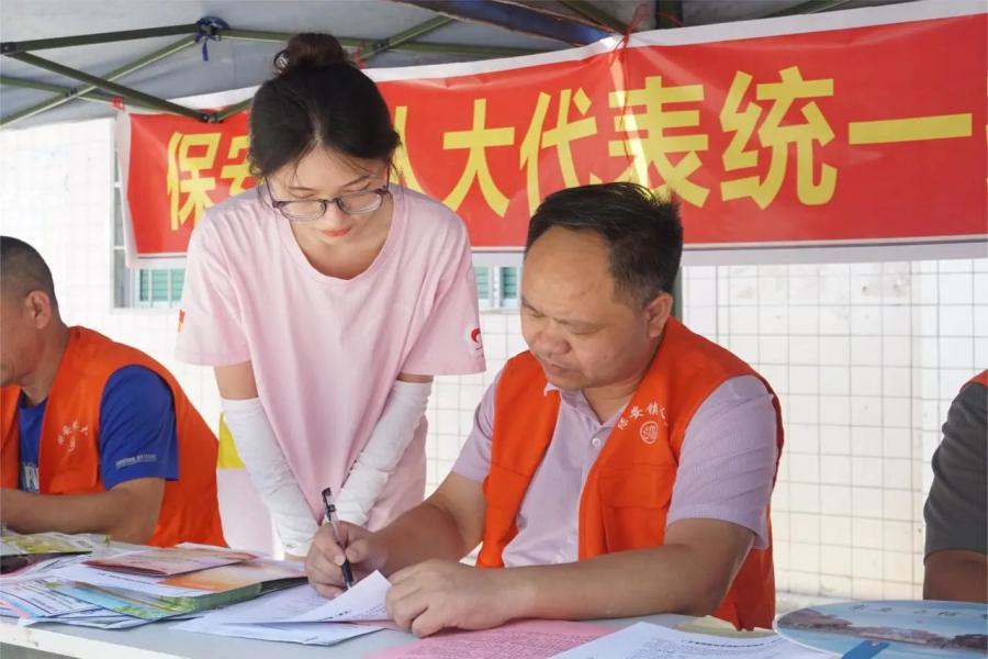 同时,保安镇人大代表与数梦启航实践团于保安镇人大代表办事处门口共同设立资助政策咨询摆摊点,积极向来往的村民发放宣传手册,面对面为其宣传讲解国家资助政策的具体内容,帮助村民们更好地理解政策细则,并对员工及家长进行问卷调查,掌握员工及家长对国家资助政策的了解程度。本次活动更是得到了保安镇人民政府的高度重视与大力支持,保安镇党委副书记、镇长欧阳文初亲临活动现场,与实践团成员共同进行政策宣讲。