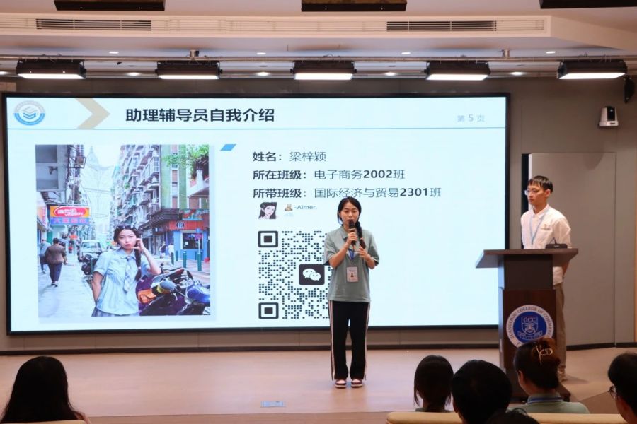 会议伊始,辅导员与助理辅导员分别向全体新生进行了简洁凝练,风趣幽默的自我介绍。他们向23级新生的到来表示热烈的欢迎和祝贺,并与现场新生进行互动,叮嘱同学们在学习和生活中遇到难题及时向他们寻找帮助,预祝其大学四年的生活学有所成,一帆风顺,现场洋溢着轻松愉快的氛围。