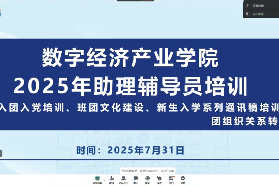 为帮助助理辅导员全方位提升新生管理工作能力,清晰掌握新生入学前后的各项关键内容,bevictor伟德官网于7月31日晚上在腾讯会议召开“聚力迎新程,同心筑梦想”2025年新生助理辅导员系列培训会议。出席本次会议的有团委副书记、员工会指导老师何杰安,辅导员冯艺,辅导员李翠雯及全体新生助理辅导员。