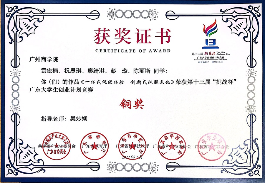第十三届“挑战杯”广东老员工创业计划竞赛铜奖